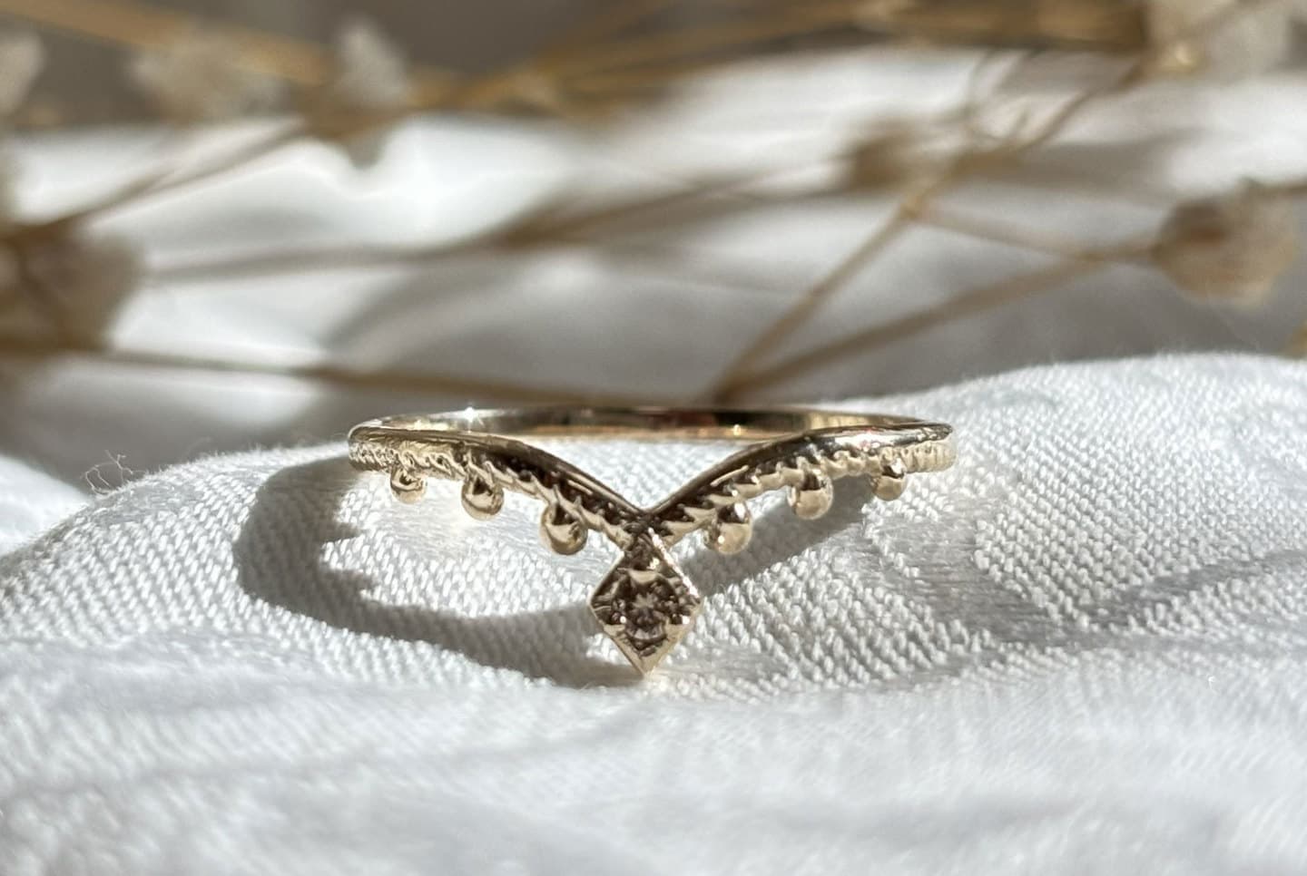 単体での着用はもちろん、Leaf Garlandリングとのレイヤードでフレームのようなスタイリングも楽しめます。